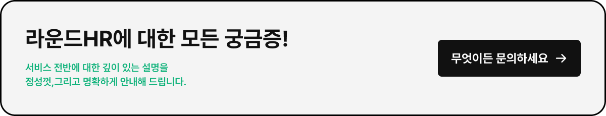 아무리 UI가 쉽고, 도움말 가이드가 있어도 여전히 휴먼에러에 대한 걱정과 우려가 있다면? 걱정 마세요. 라운드HR은 초기 적응과 온보딩을 1:1 상담으로 직접 도와드리고 있으니까요.