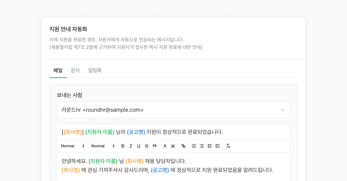 지원자가 바라는 기업의 휴먼터치(Human Touch)는 기계적인 알림이 아닙니다. 진짜, 배려받는 경험이지요. 단순히 괜찮은 문장을 자동으로 보내는 것이 아니라, 기업의 브랜드 가치가 담긴 커뮤니케이션을 자동화해야 하는데요. 지금부터 효율성과 진정성을 동시에 높이는 브랜딩 담긴 휴먼터치 자동화 방법을 살펴보겠습니다.