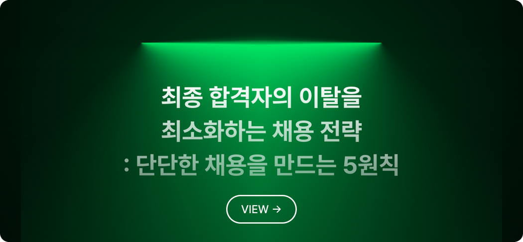 최종 합격자의 이탈을 줄이는 가장 확실한 방법은 더 많은 조건을 제시하는 것이 아니라, 기업이 후보자에 대한 흔들리지 않는 판단을 보여주는 것입니다. 우리가 왜 후보자를 뽑았는지 일관되게 설명하고, 어떤 역할을 기대하는지 분명히 밝히며, 그 판단이 입사 후에도 유지될 것이라는 신호가 전달될 때 후보자는 비로소 확고한 결정을 내릴 수 있습니다. 결국 후보자가 선택하는 것은 조건의 총합이 아니라 그 뒤에 있는 기업의 판단 상태입니다.