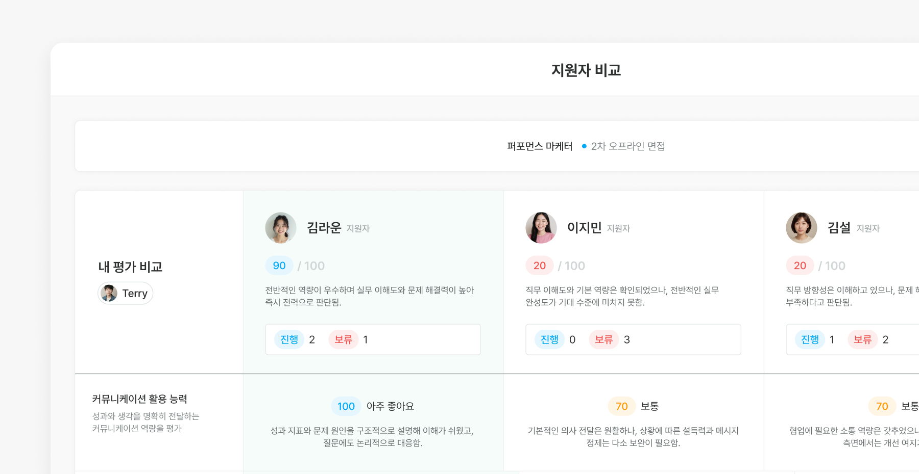✅ 지원자들을 테이블 형태로 병렬 비교